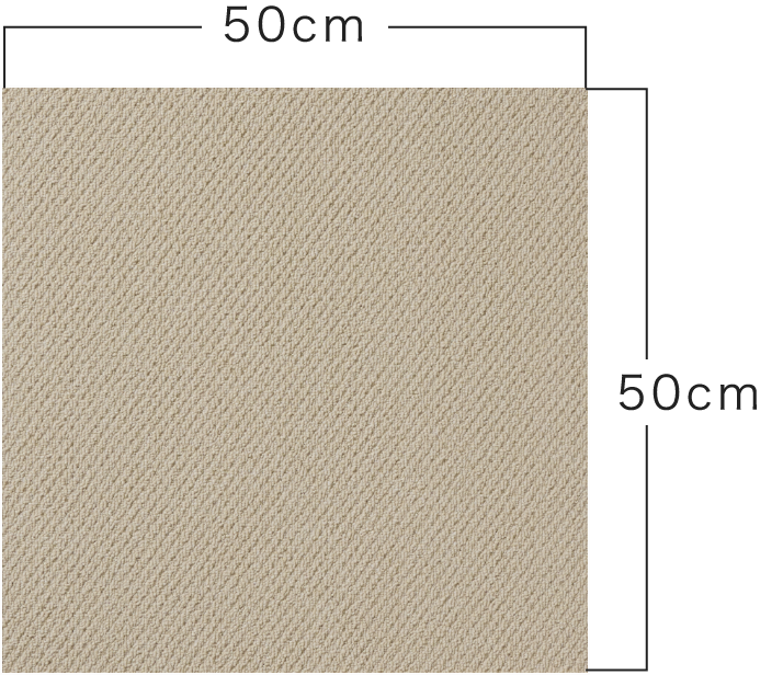 ホームタイルカーペットのサイズは、すべて共通で50cm×50cmです。